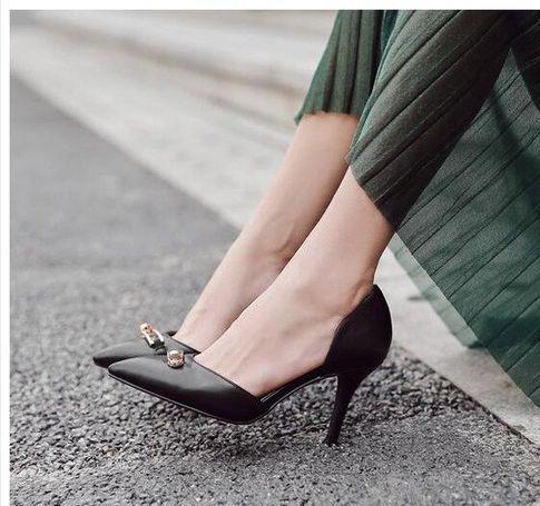 Dù là người chỉ có một vài đôi giày cao gót hay là người có cả tủ giày thì những đôi giày cao gót mũi nhọn màu đen luôn chiếm vị trí quan trọng. Thiết kế đơn giản với chất liệu da bóng thời thượng, vừa sang trọng vừa mang tính ứng dụng cao khi có thể mix match với nhiều loại trang phục.