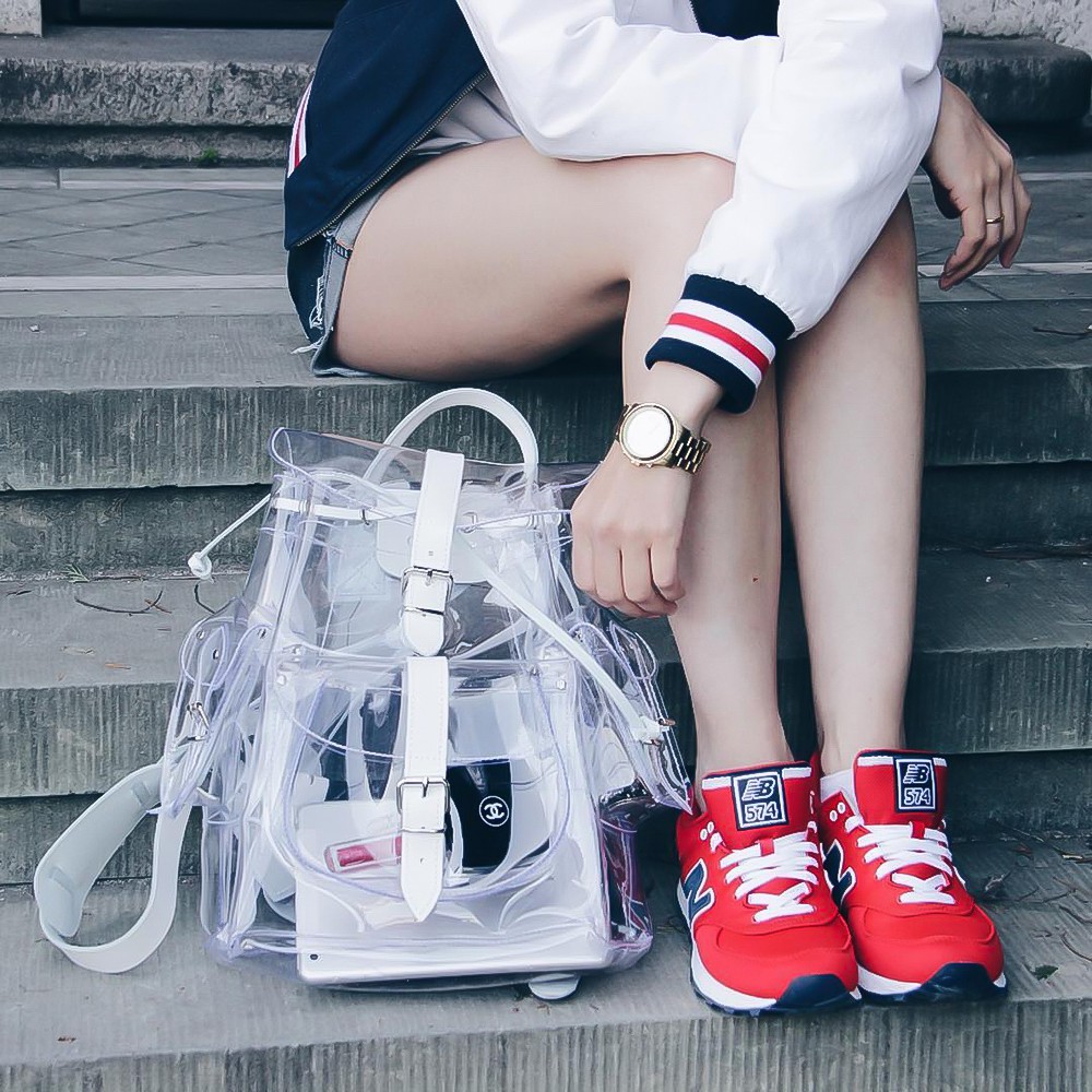 Nếu là một tín đồ yêu thích thời trang nhưng lại không muốn bị "lố" khi tới trường, hãy thử sắm cho mình 1 chiếc balo trong suốt để bắt kịp xu hướng. Balo trong suốt giúp chủ nhân có thể dễ dàng khoe được những món phụ kiện nổi bật bên trong như là hộp bút, ví tiền, hoặc sáng tạo hơn là sách vở được bọc giấy có tông màu nổi bật để gây ấn tượng. Với những bạn trẻ yêu thích sự mới lạ, phóng khoáng thì đây chắc chắn là một gợi ý không tồi để bạn khẳng định cá tính.